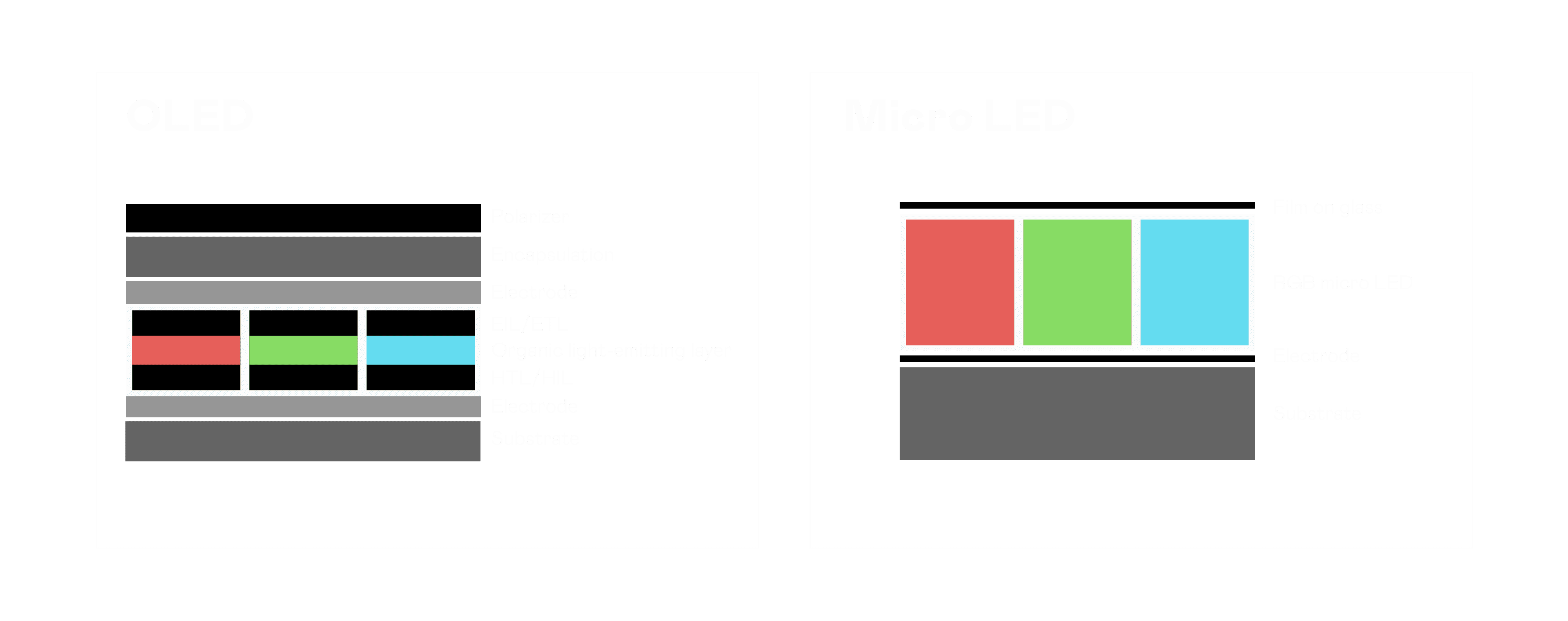 以 LED 做为显示画素,,可让 LED 的发光效率发挥到极致,,,从而让显示器具备优异的亮度表现,,,,不论是在户外或室内,,均具备出众的显示效果。。同时,,,与使用有机材料的 OLED 相比,,,,LED 具备更稳定、、寿命更长的特性,,,不仅不会有画面烙印问题,,,而且更不容易出现故障、、、坏点。。。