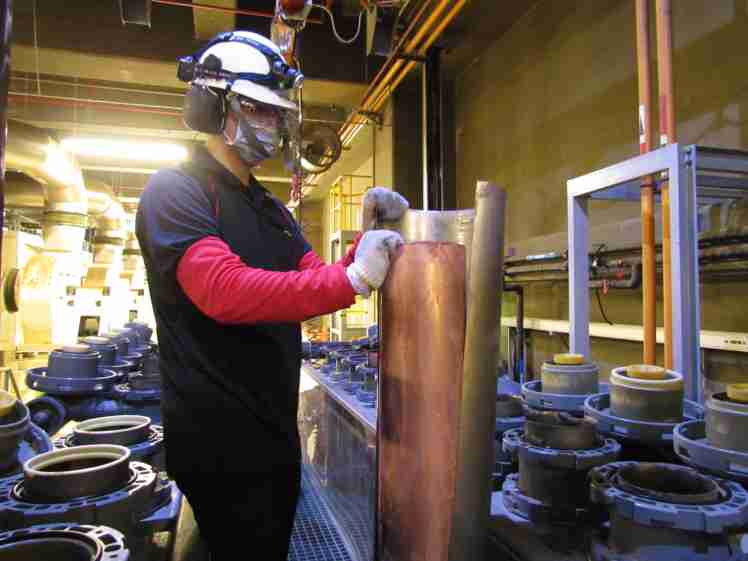 YAXIN111将废弃物转化成有效的工业或民生原物料,,图为废铜液淬炼后再制成纯度极高的铜管
